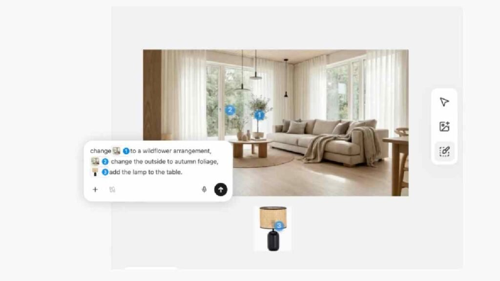 La Mark Tool funciona como un pincel inteligente. El diseñador puede simplemente marcar un objeto —por ejemplo, una mesa de centro— y pedirle a la IA que la sustituya por una estantería de estilo industrial o que cambie su material de madera a metal pulido. Lo asombroso de este sistema es que la herramienta recalcula automáticamente cómo el nuevo objeto afecta a las sombras y reflejos del entorno, manteniendo una iluminación coherente. Esta capacidad de realizar cambios «sobre la marcha» es vital en reuniones con clientes donde las decisiones deben tomarse de forma inmediata para cerrar acuerdos.